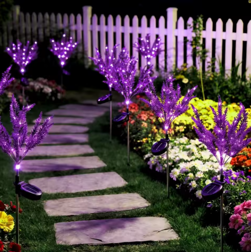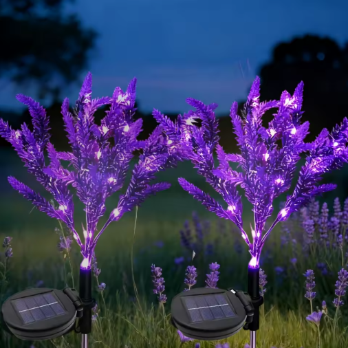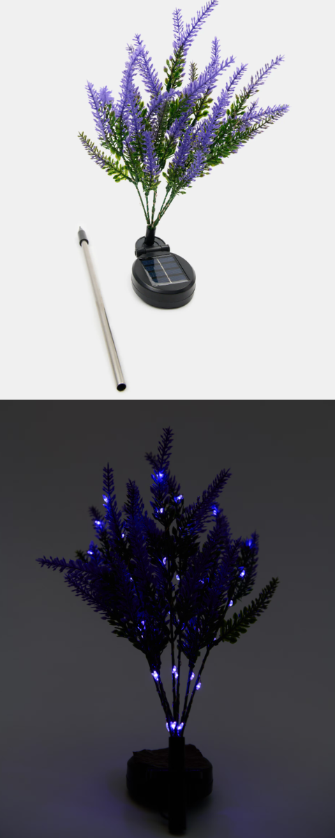 Садовий сонячний LED ліхтар у формі лаванди — це стильний та екологічний спосіб прикрасити ваш сад або подвір’я. Завдяки реалістичному дизайну квітів лаванди він виглядає як жива рослина вдень, а вночі перетворюється на ніжне джерело світла.